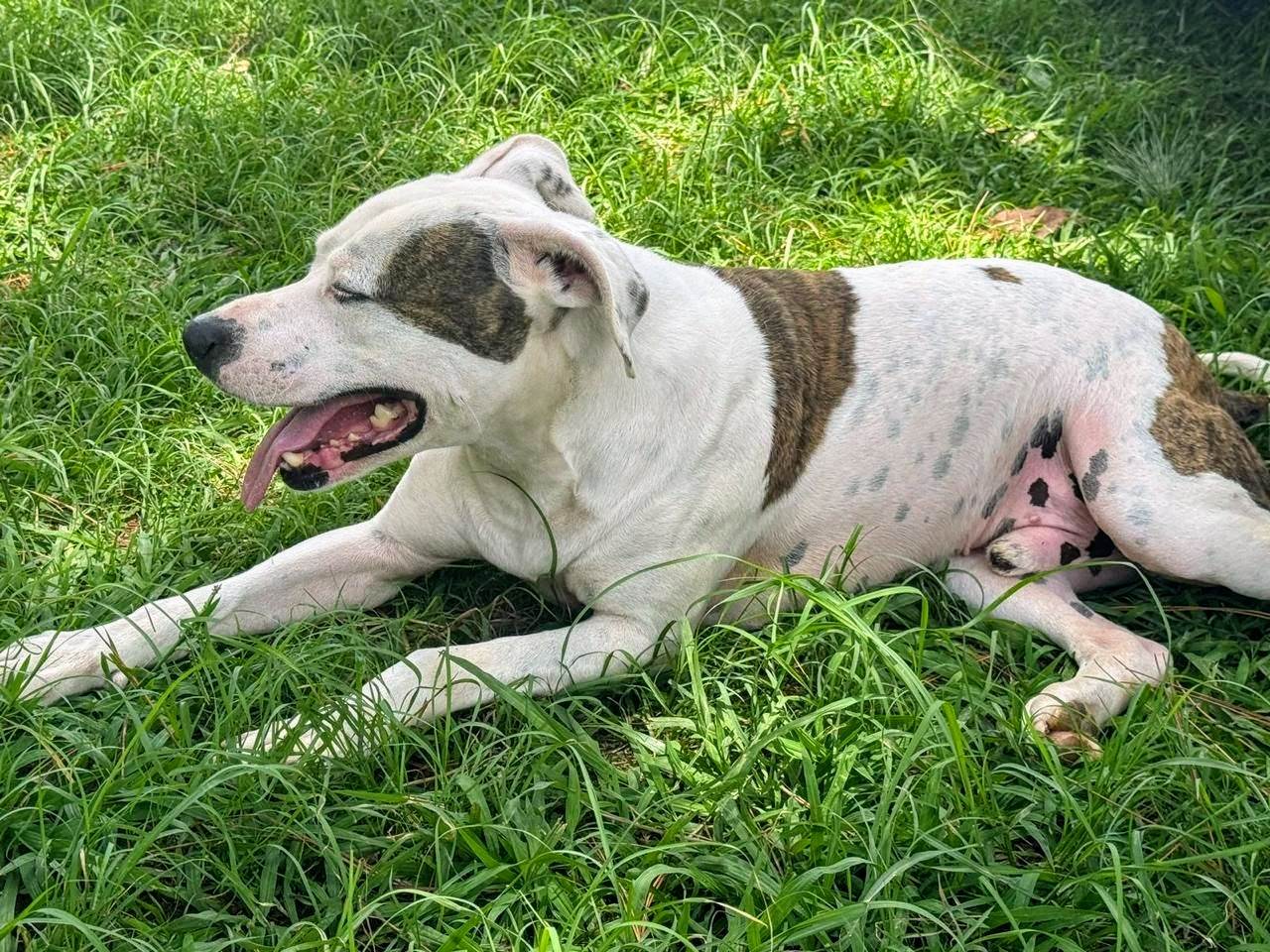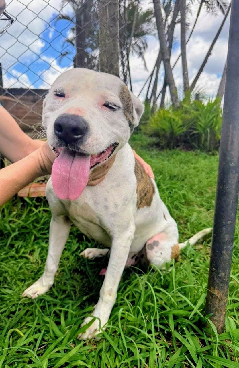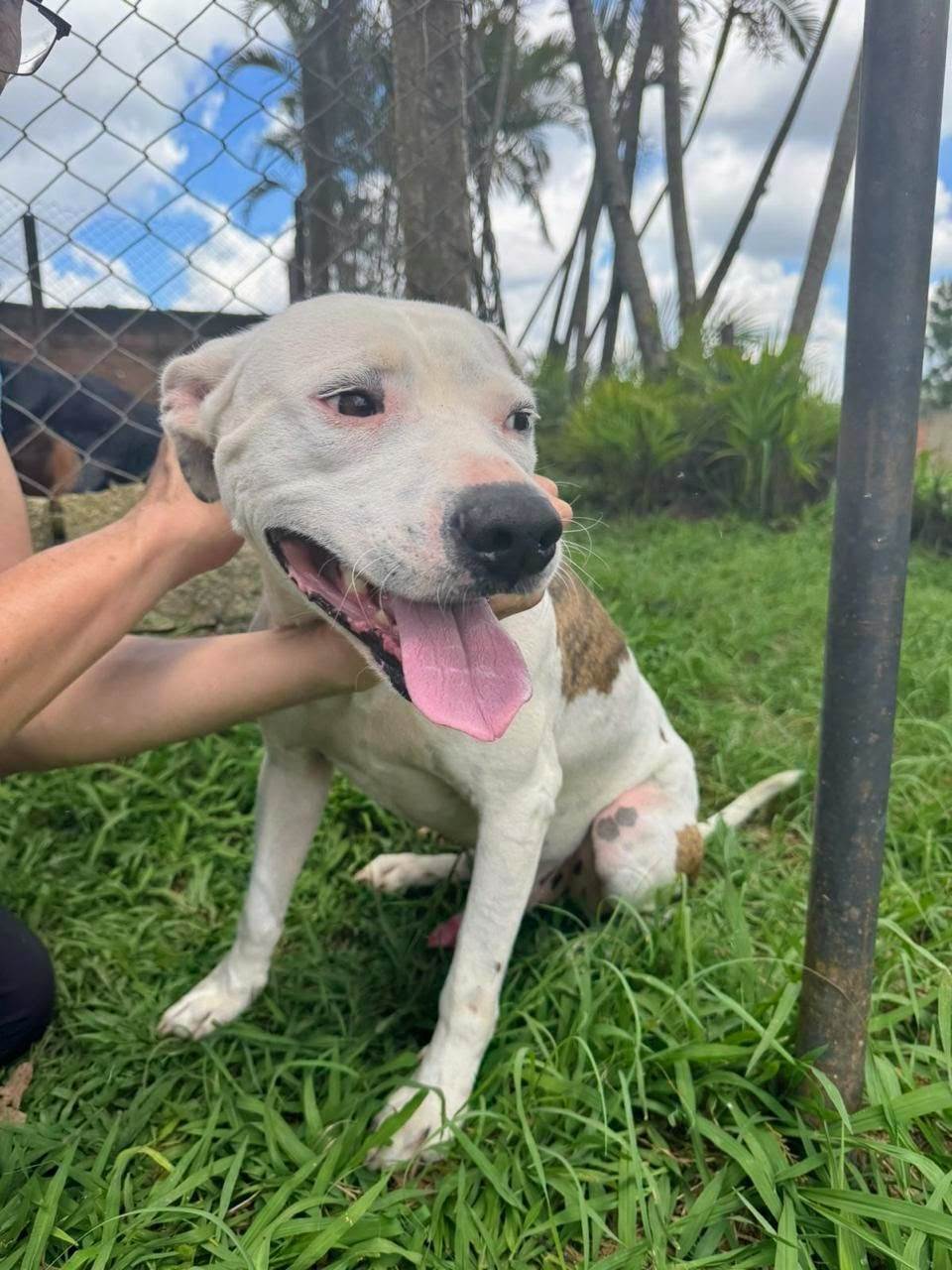 Cachorro grande, 2 anos, Pit-Bull, cor Branca/Marrom .